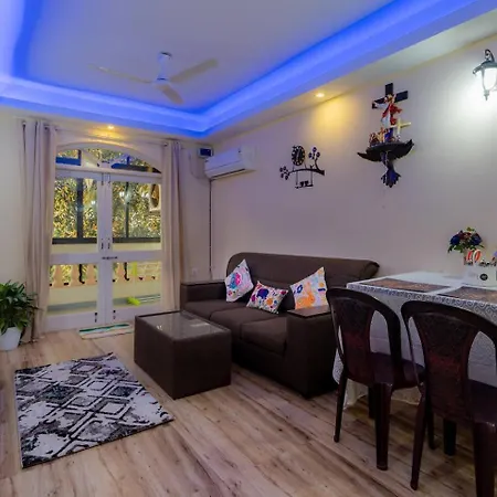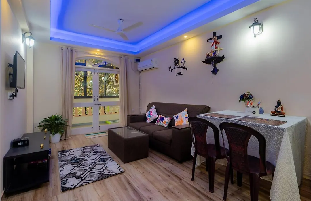Apartament 2 Min to Colva Beach - Cozy Nook oferuje widoki na ogród i obejmuje balkon, pełnowymiarową kuchnię i w pełni wyposażoną kuchnię z klimatyzacją. Obiekt noclegowy oferuje również 1 łazienkę.